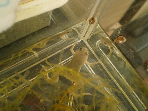 我が家のカエルくんたちは、子供たちがおもしろ半分に、金魚すくいのような感じですくってきた子たちです。