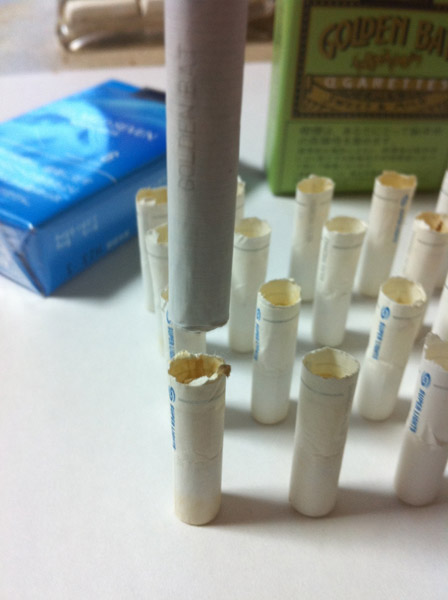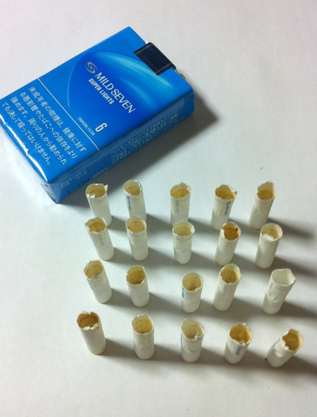 マイルドセブンのシケモクとバットのコラボによって、見事ニセマイルドセブン20本が完成しました。(写真3)
