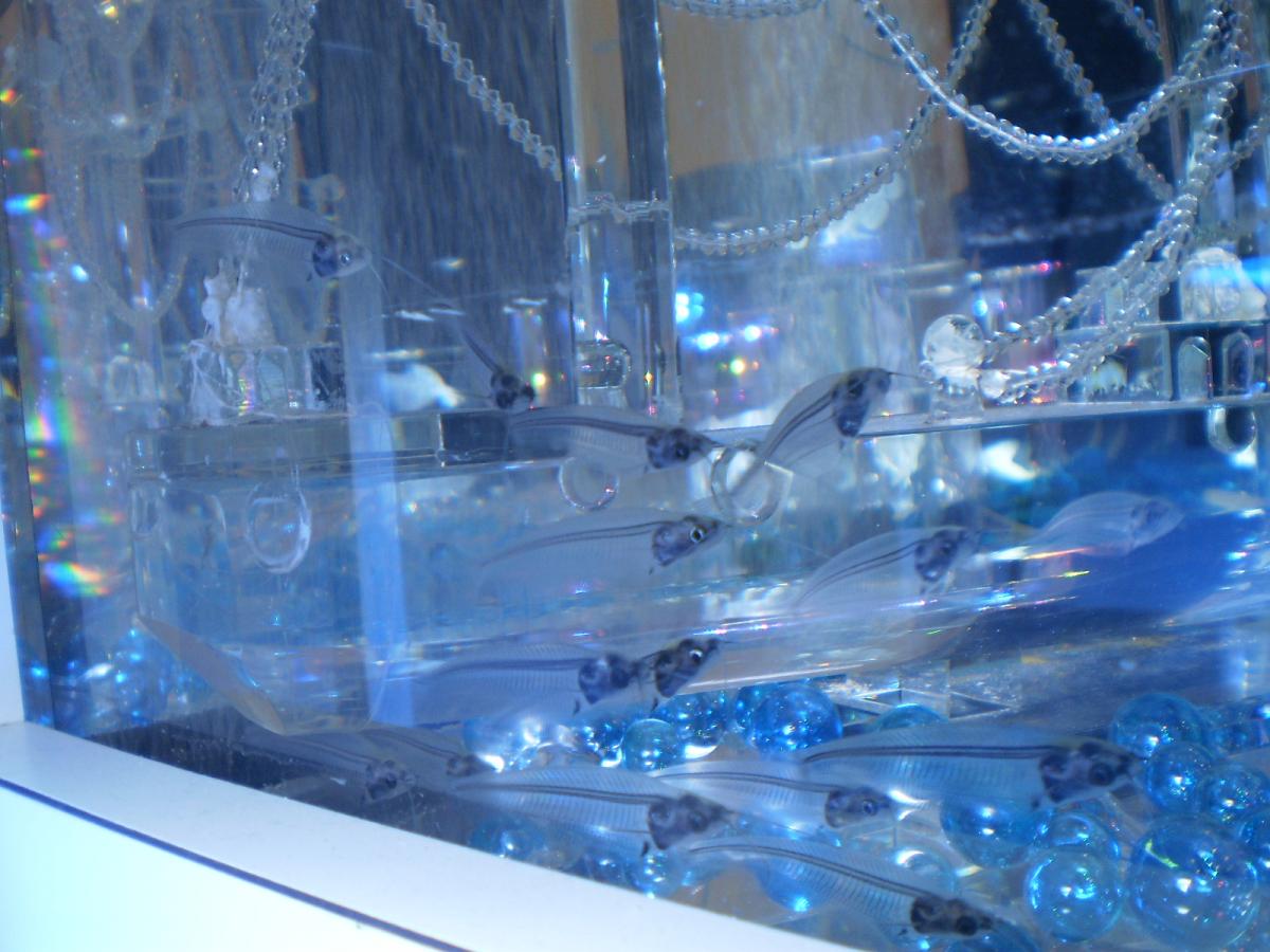 (透明の体の魚、グラスキャットときらきら水槽 写真まん中)
